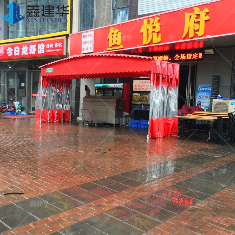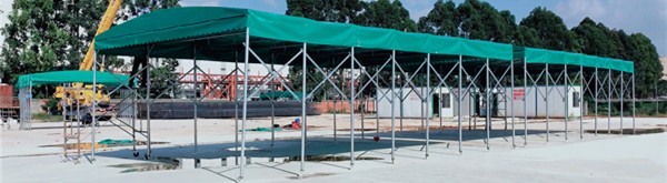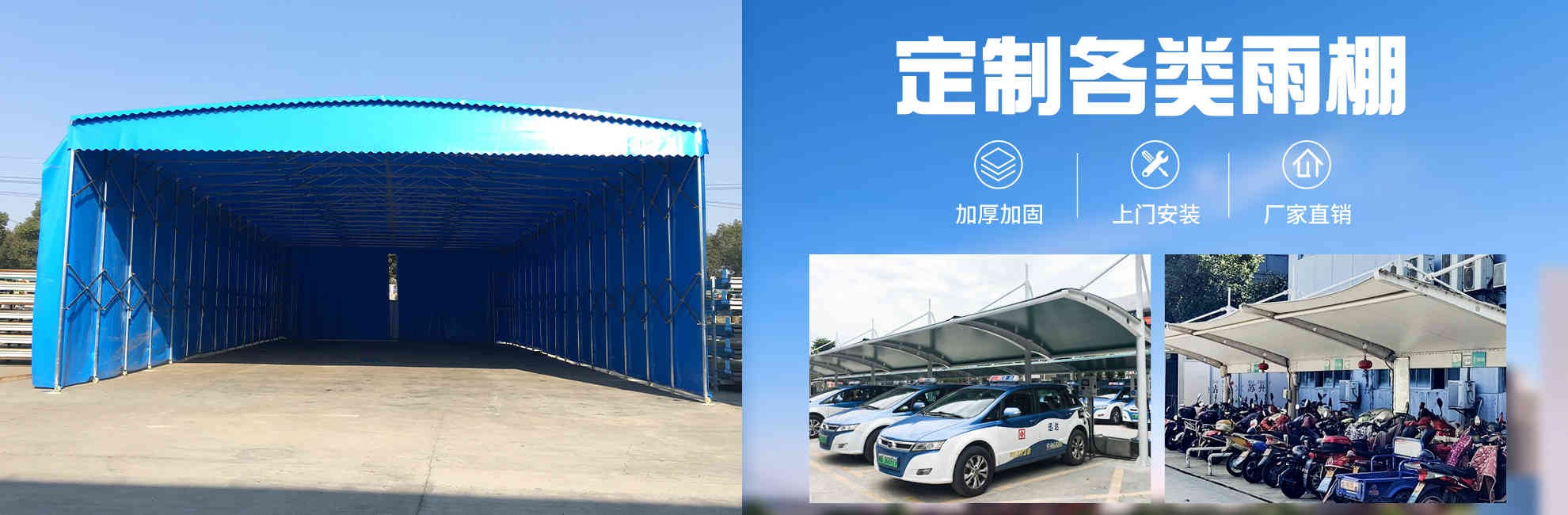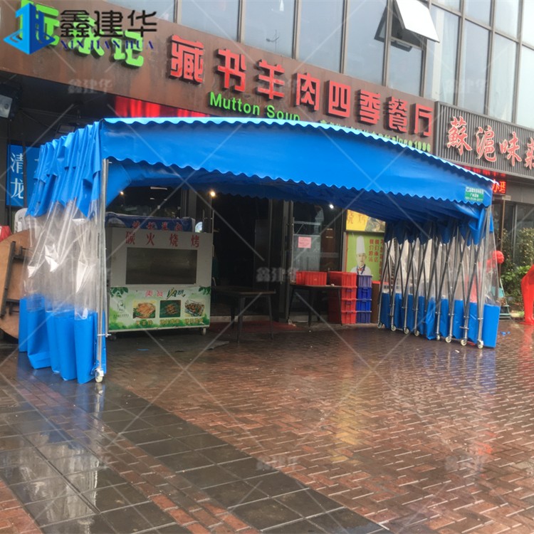 濟南兩邊鋼立柱電動伸縮雨棚 移動推拉遮雨蓬