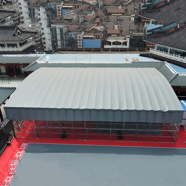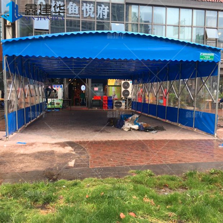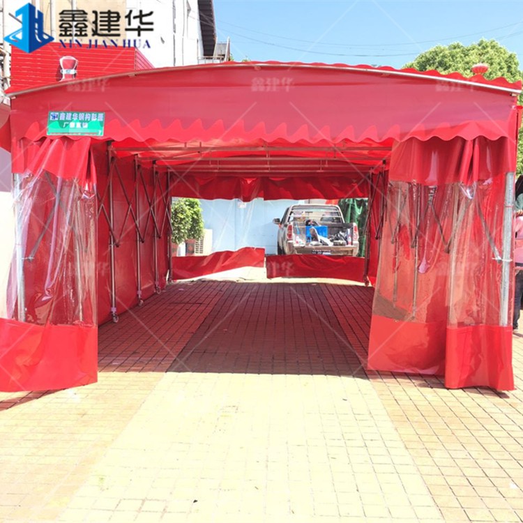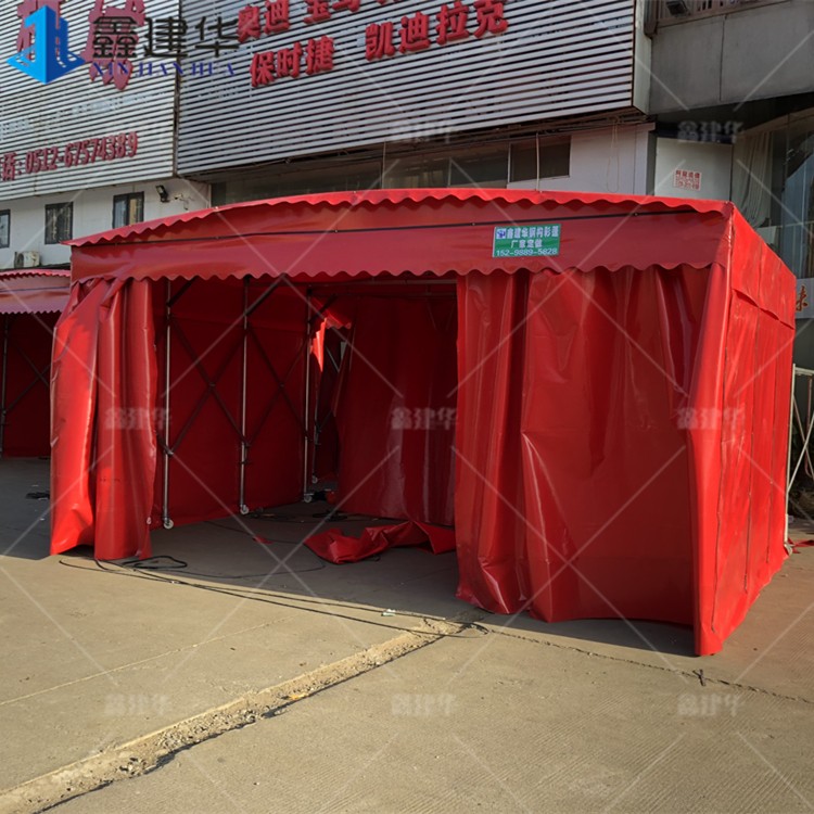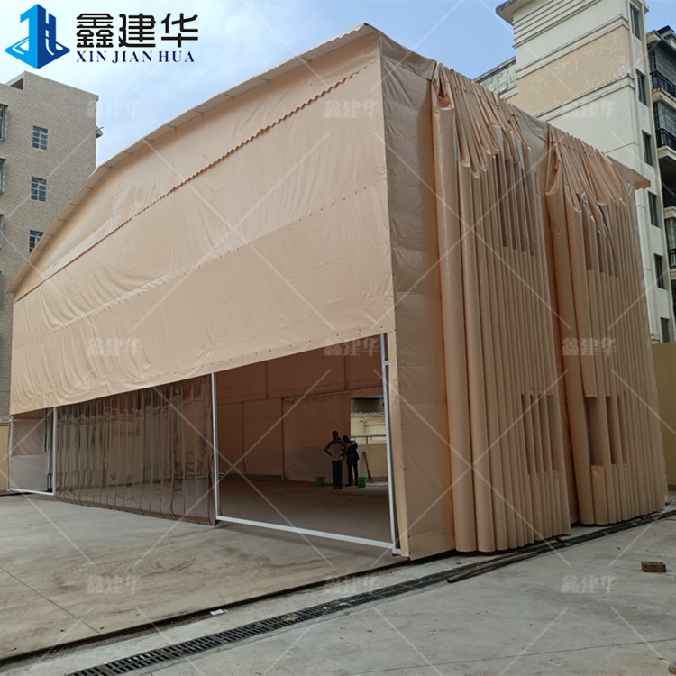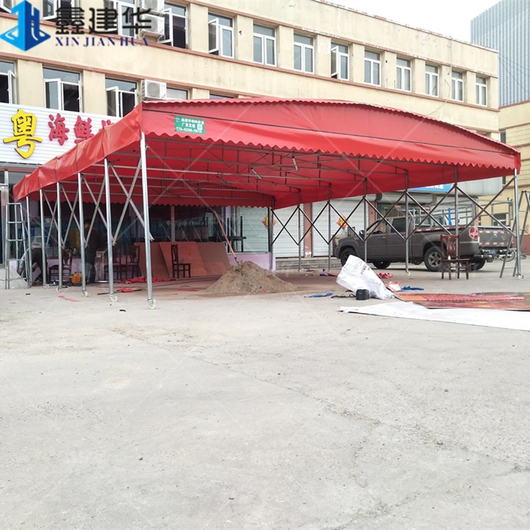 濟南室外電動伸縮雨棚 鋼結(jié)構(gòu)移動推拉篷廠家定制