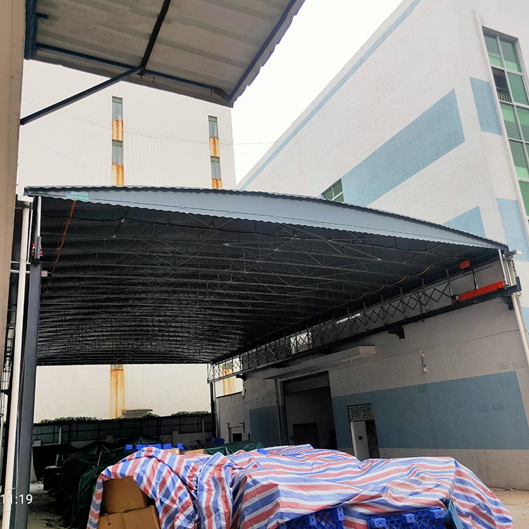江門廠房過道定制懸空電動推拉雨篷 大跨度伸縮移動遮雨棚