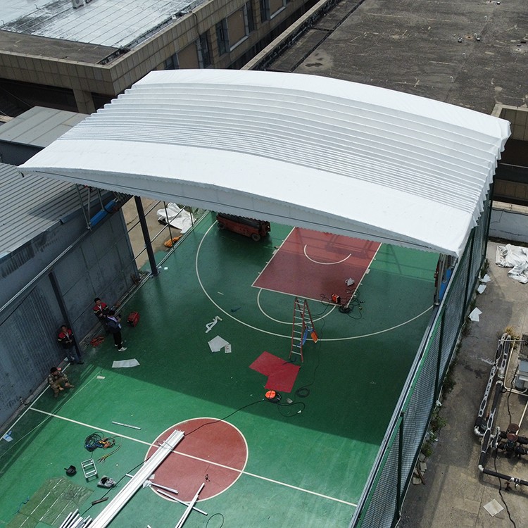 重慶籃球場架空電動雨棚 懸空伸縮雨棚廠家安裝