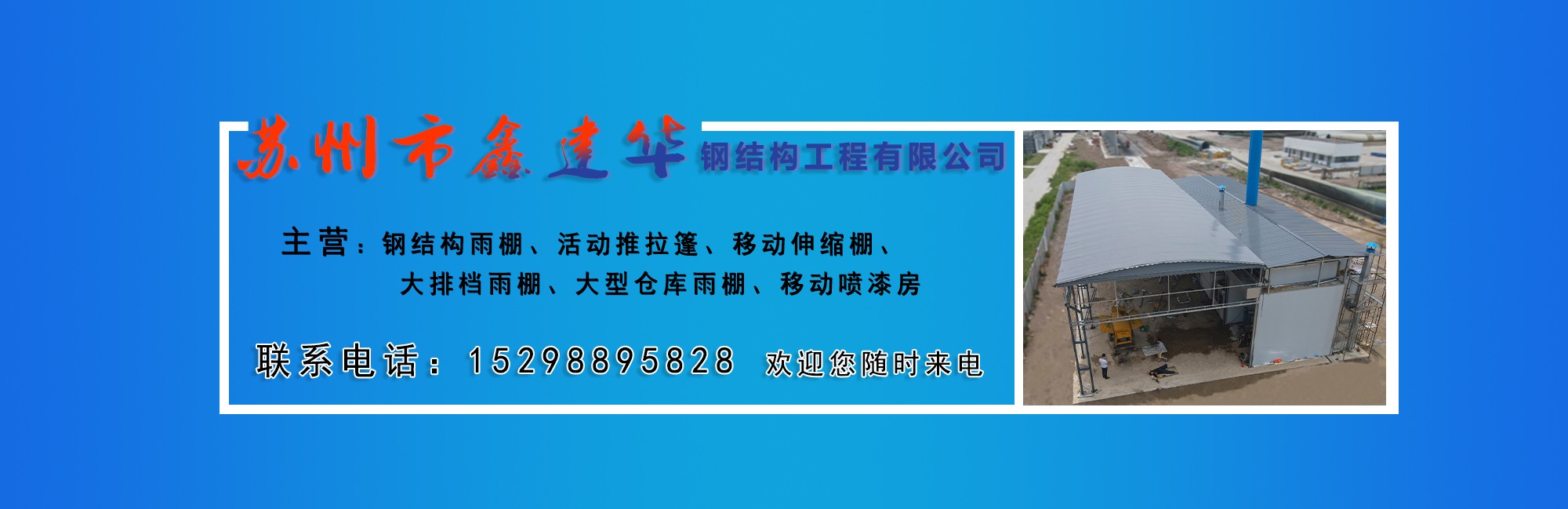 蘇州鑫建華鋼結(jié)構(gòu)工程有限公司,是一家從事戶外倉儲雨棚,活動雨棚、移動雨棚設(shè)計、生產(chǎn)、銷售、技術(shù)服務(wù)的公司。 鑫建華擁有多地加工廠區(qū)(江蘇蘇州,天津,湖北武漢,山東聊城,四川成都,廣東東莞),服務(wù)范圍多地。公司匯集了一批擁有豐富實踐經(jīng)驗的技術(shù)人才,設(shè)計出實用電動推拉倉儲產(chǎn)品,實現(xiàn)空間利用的趨勢。作為江浙滬地區(qū)戶外遮陽倉儲的公司,注重在新產(chǎn)品研制開發(fā)方面的投入,在技術(shù)理念和造型設(shè)計等方面不斷推陳出新,在質(zhì)量和服務(wù)上信守承諾。